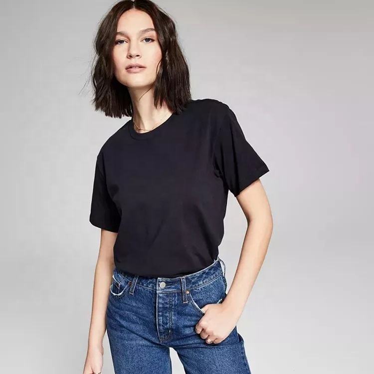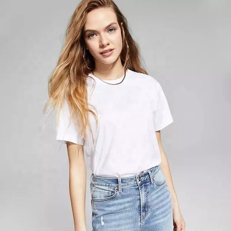 Camiseta de algodón de manga corta con Logo personalizado para mujer, Camiseta holgada elástica con cuello redondo para mujer