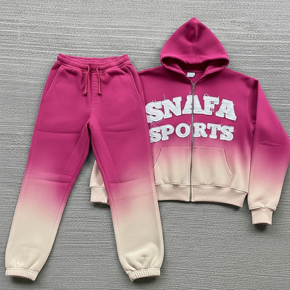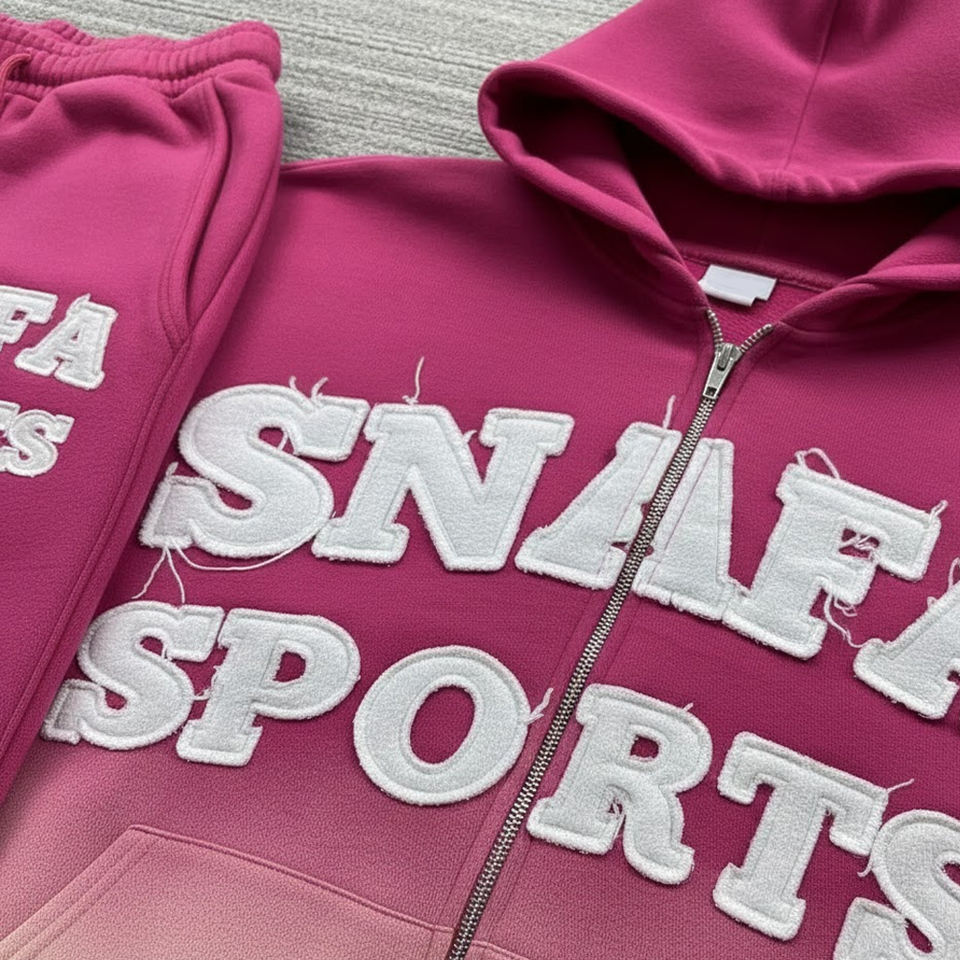 Conjunto de Chándal Personalizado con Logotipo, Pantalones Deportivos y Sudadera con Efecto Desgastado y Bordado, Conjunto de Chándal para Hombre con Lavado Ácido