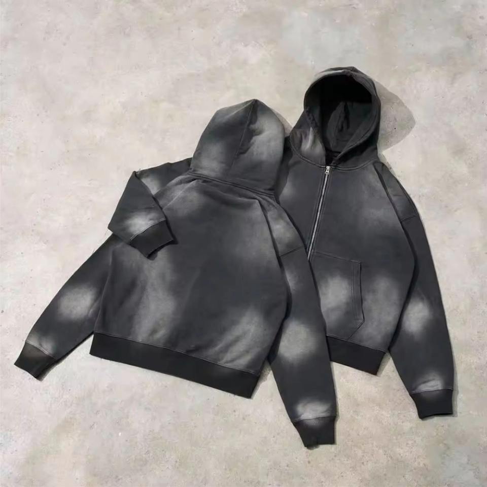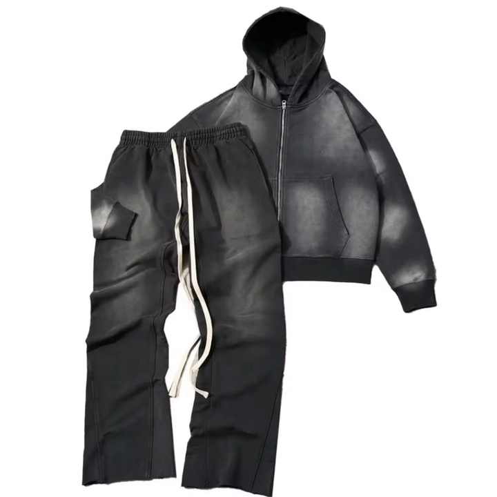 Chándal de hombre con serigrafía desteñida al sol y logotipo personalizado, chándal lavado con ácido para hombre, chándal transpirable de tela pesada para correr