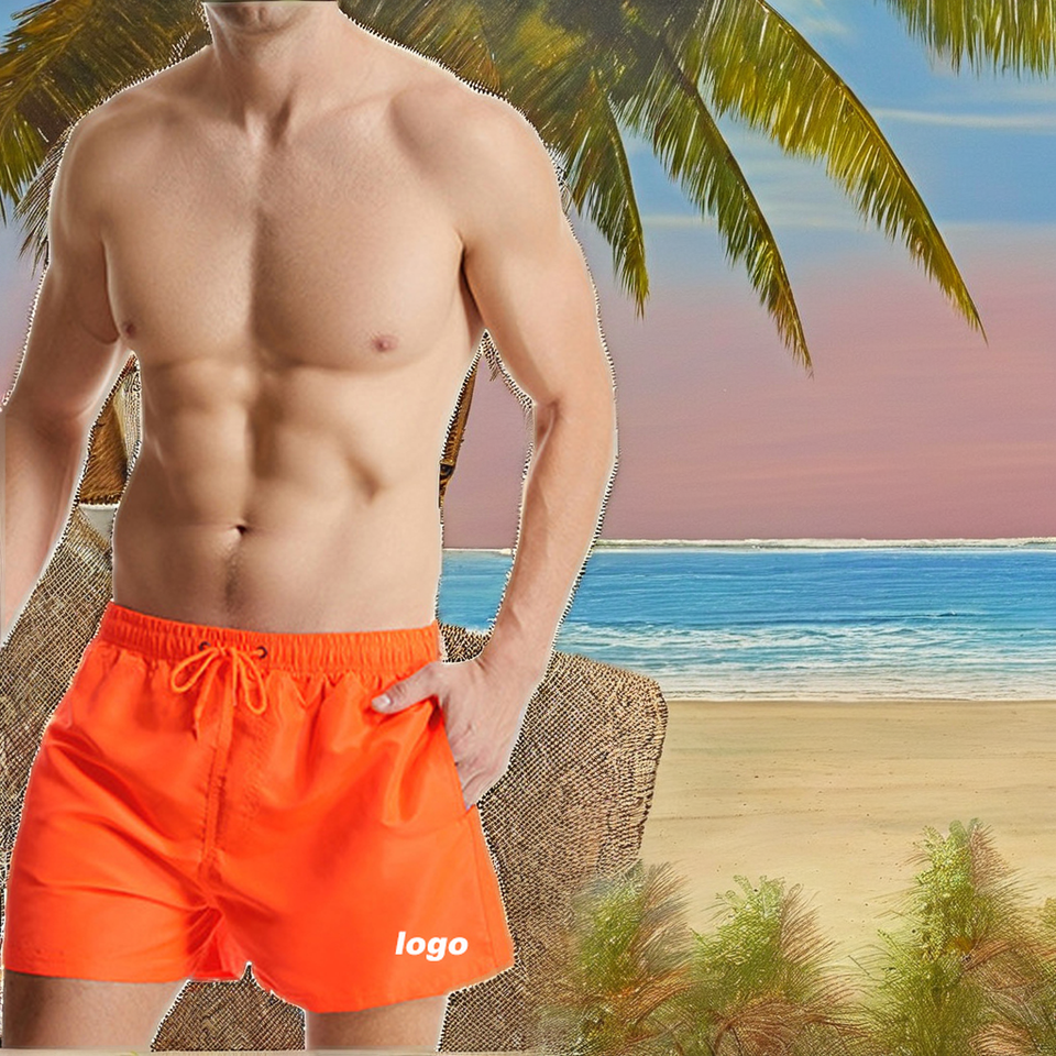 Shorts de Playa para Hombre con Logotipo Personalizado, Color Sólido, Cordón Ajustable, Cintura Media, Secado Rápido