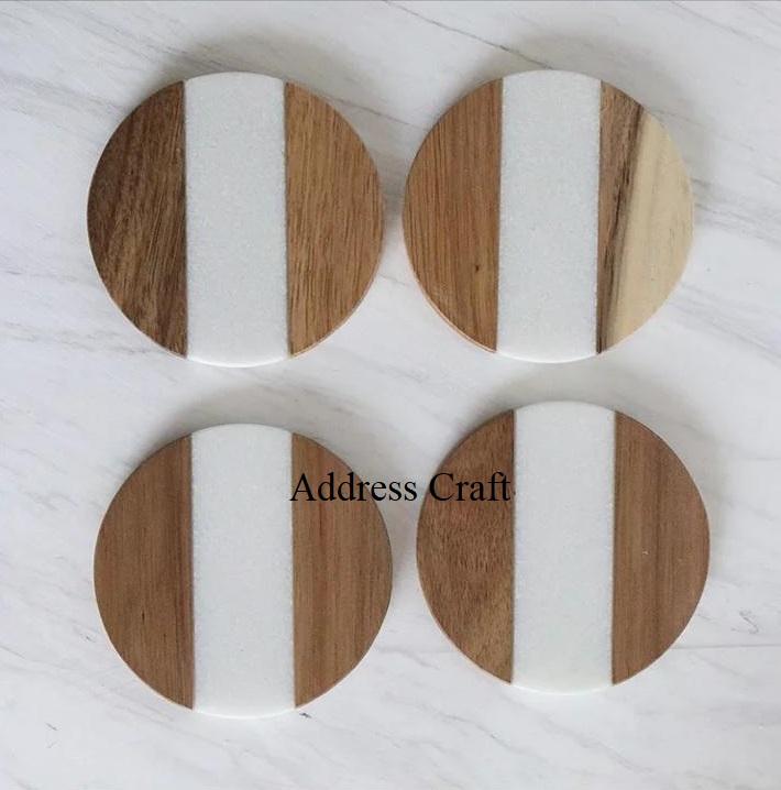 Juego de posavasos de té con logotipo personalizado, vajilla de mármol de madera redonda elegante de 4 piezas para el hogar, hotel, restaurante, Estilo clásico