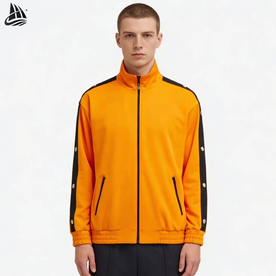 Chaqueta Deportiva Personalizada con Logotipo, Estilo Desgarrable, Franjas Laterales, Botones Desmontables y Cierre de Cremallera para Hombre