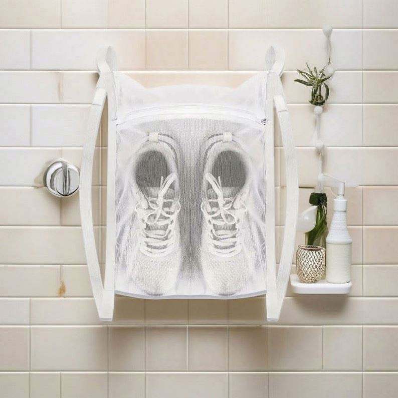 Bolsa de lavado de malla lavable con cremallera y logotipo personalizado, resistente y apta para secadora, para lavar zapatos en lavadora