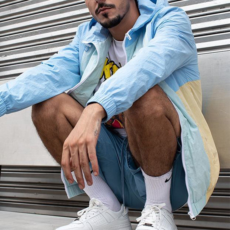 Conjunto Deportivo de Dos Piezas con Logotipo Personalizado, Chaqueta Cortavientos con Cremallera y Pantalones Cortos de Poliéster para Hombre