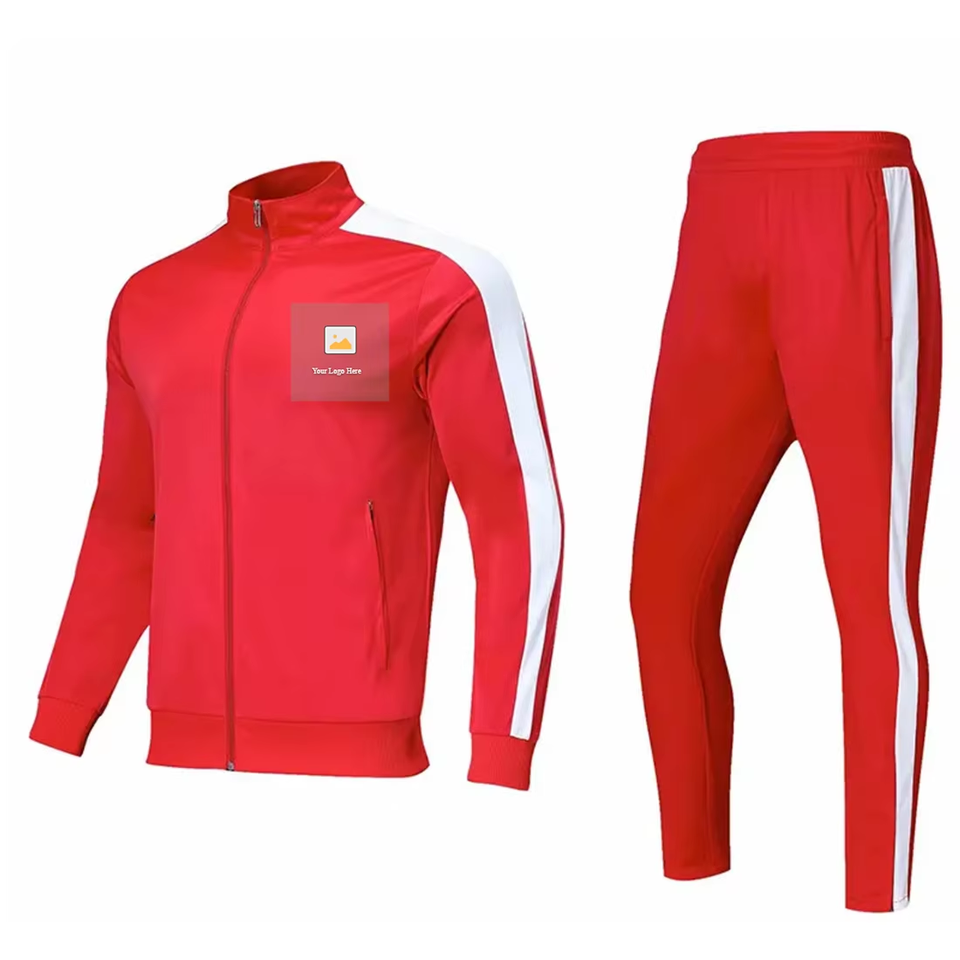 Conjunto de chándal con logotipo personalizado para hombre Chaqueta deportiva con cremallera completa y pantalones de Jogger Detalle de rayas Ropa atlética de dos piezas OEM a granel