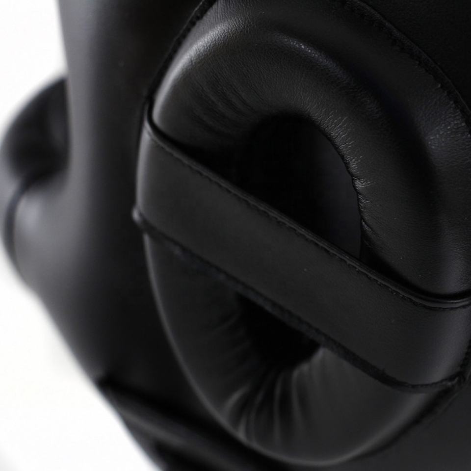 Logotipo personalizado Entrenamiento Kickboxing Artes marciales Taekwondo Cuero de vaca MMA Fighting Black-Color Head Guard Boxing Gears