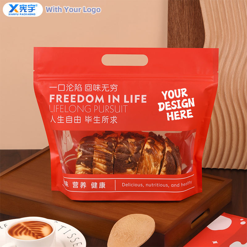 Bolsa de Plástico Transparente con Cierre y Base para Sostener en Mano, con Logotipo Personalizado, de Grado Alimenticio, para Hornear Galletas, Pan, Palomitas de Maíz y Croissants