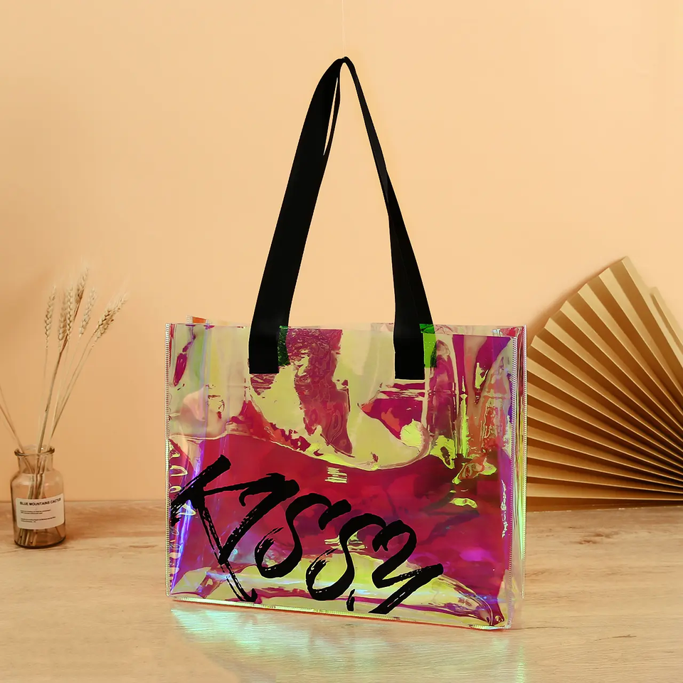 Bolso de mano transparente de PVC naranja con logotipo personalizado y cierre de botón, elegante diseño de moda para regalos y compras