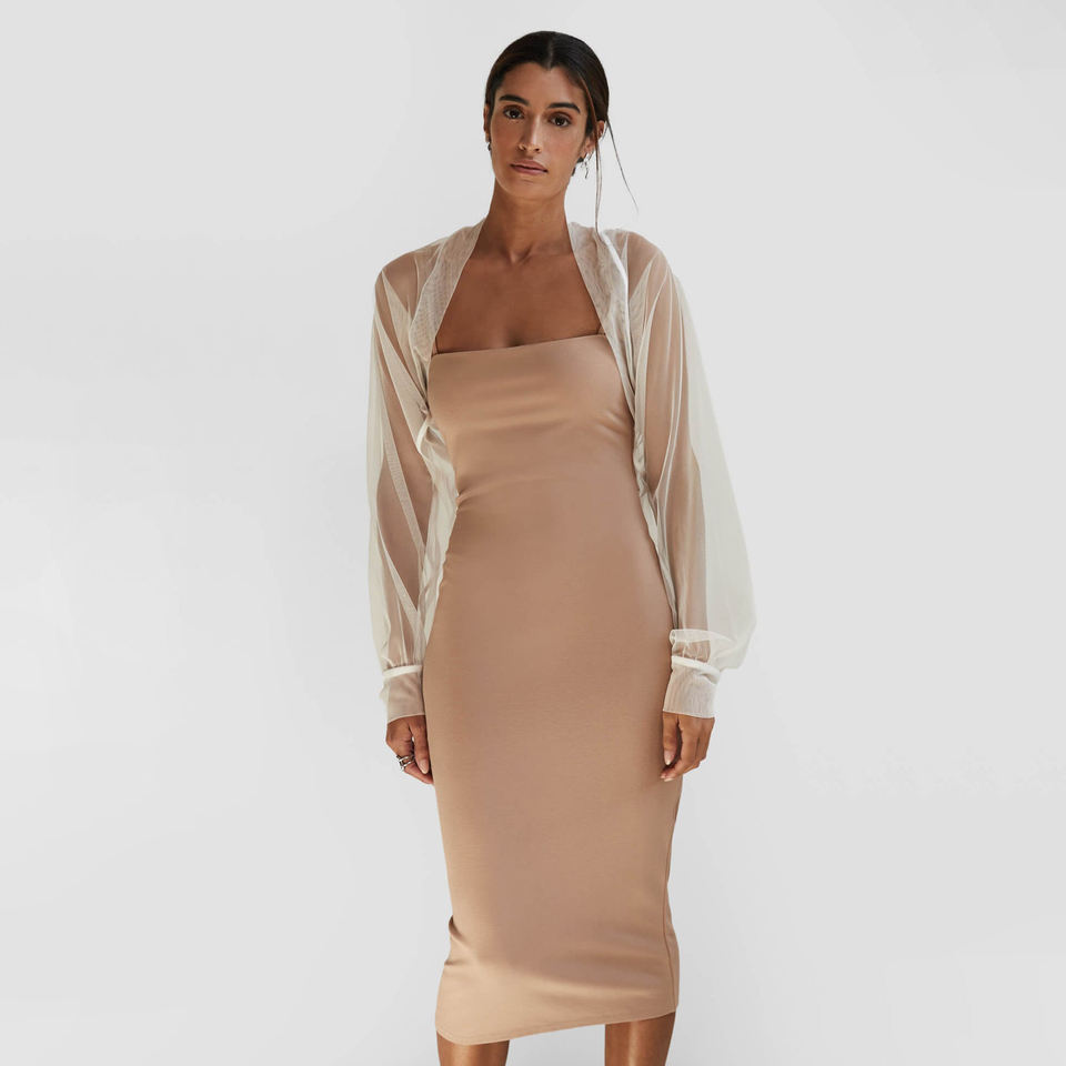 Bolero de malla transparente con logo personalizado, manga larga, ajustado, top corto para mujer, bolero de malla.