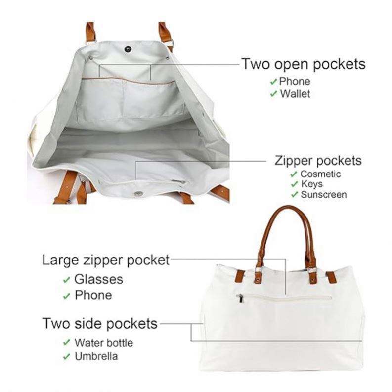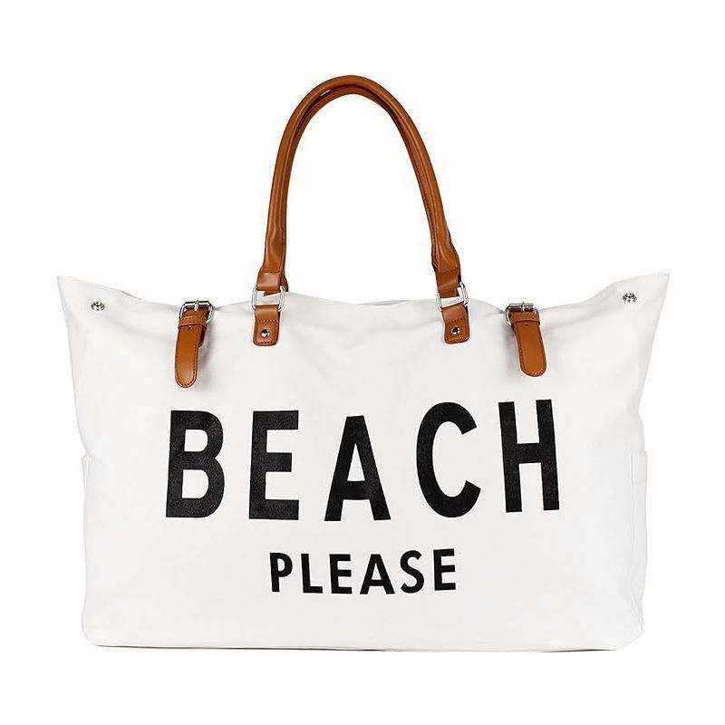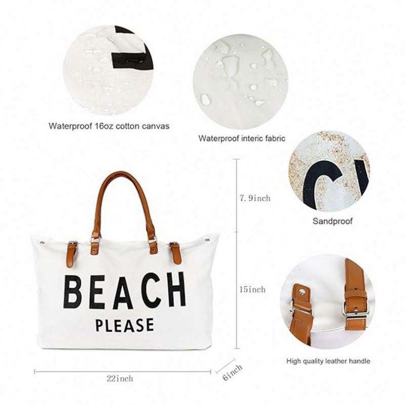 Bolsa de Viaje Personalizada con Logotipo, Bolsa de Playa Extra Grande de Lona con Asa de Cuero Vegano
