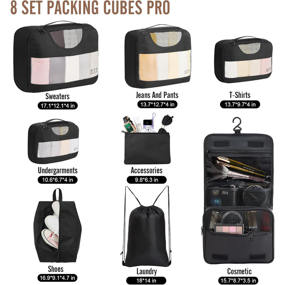 Bolsa de Almacenamiento para Maletas de Viaje con Logotipo Personalizado, Juego de 9 Organizadores de Compresión, Cubos de Embalaje, Organizador de Equipaje de Viaje, Bolsas de Almacenamiento