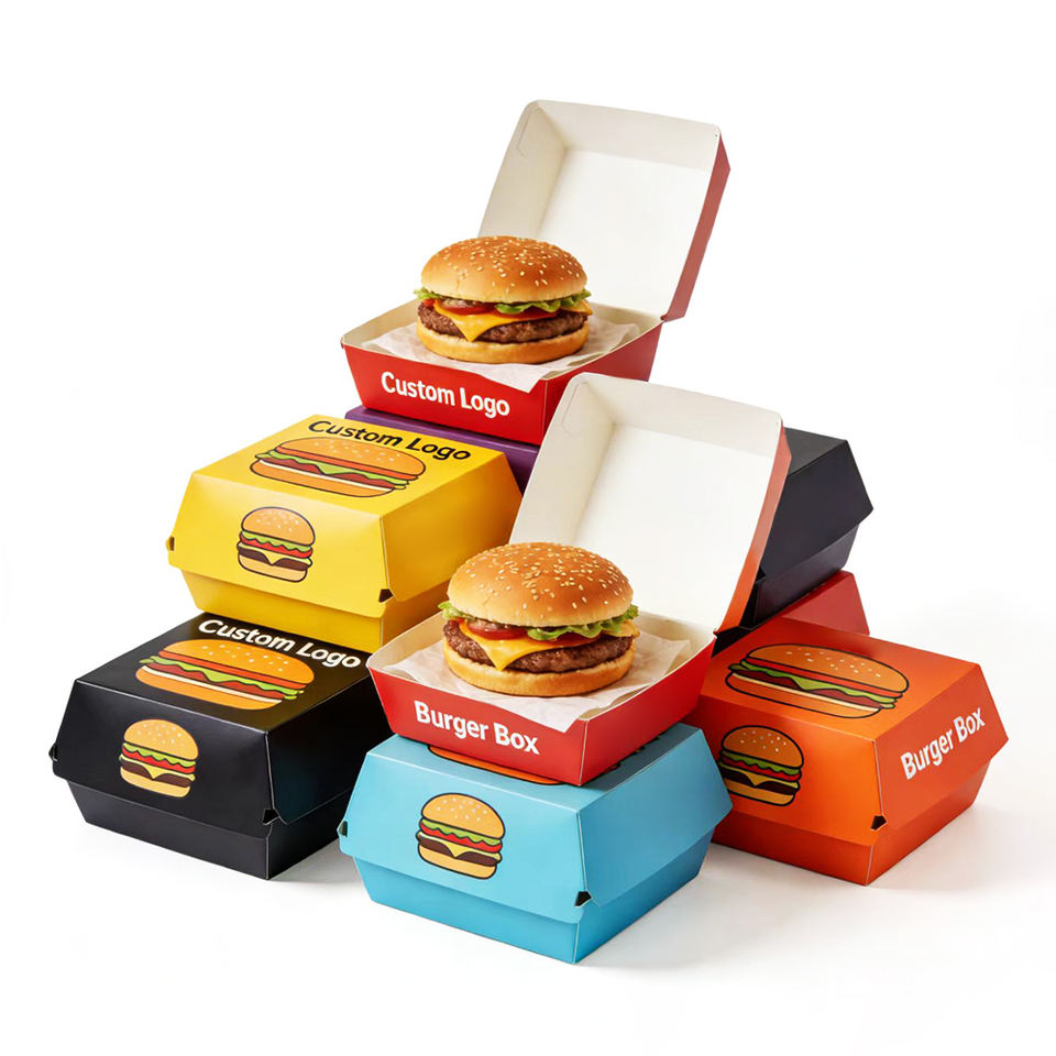 Caja para Hamburguesas Desechable de Grado Alimenticio con Logotipo Personalizado en Varios Colores, Envase para Hamburguesas y Papas Fritas para Llevar, Contenedor de Comida Rápida