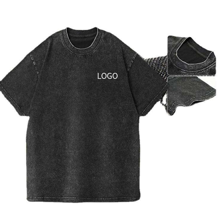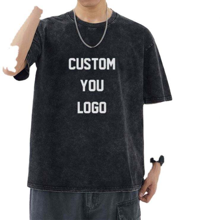 Camiseta Vintage con Logotipo Personalizado, Lavada al Ácido, para Hombre, de Algodón Grueso, Estilo Desgastado, Talla Grande, 100% Algodón
