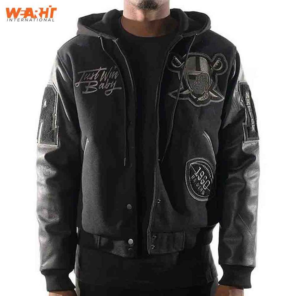 Logotipo personalizado Vintage Lana Chenille Bordado Béisbol Letterman Chaquetas Soporte Varsity Chaqueta de los hombres de cuero blanco de la manga de invierno