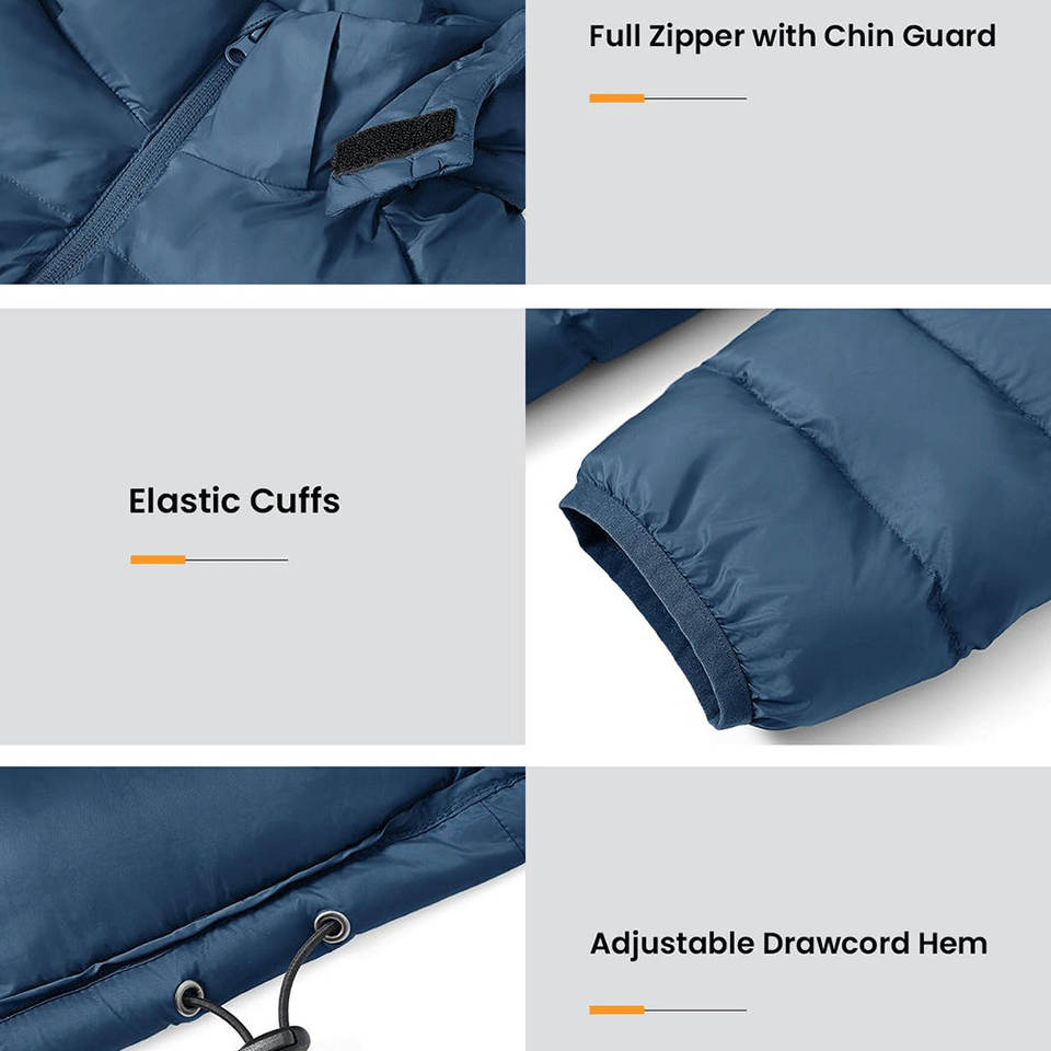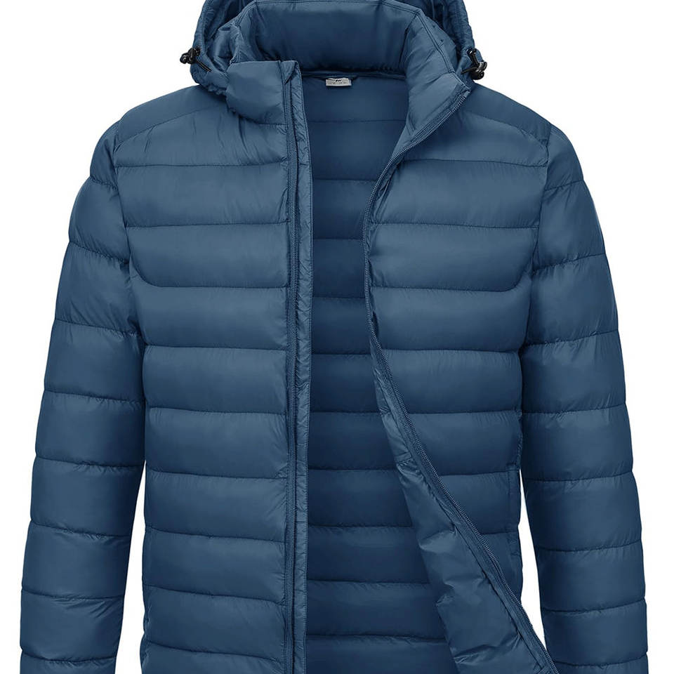 Logotipo personalizado Calor Impermeable de alta calidad Ropa al aire libre Chaquetas de hombre Cuello con capucha Chaqueta acolchada de tamaño regular para hombres