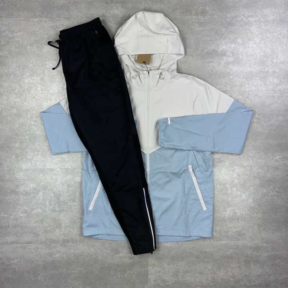 Traje cortavientos de nailon poliéster ligero impermeable con logotipo personalizado conjunto de chándal cortavientos para exteriores para hombre