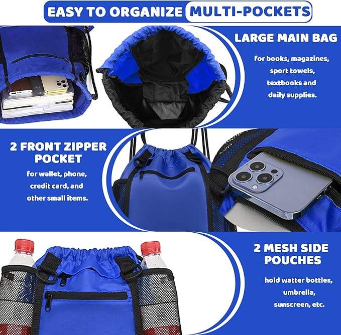Logotipo personalizado impermeable deporte mochila con cordón bolsillos de malla con cremallera promocional natación baloncesto bolsa con cordón patrón sólido