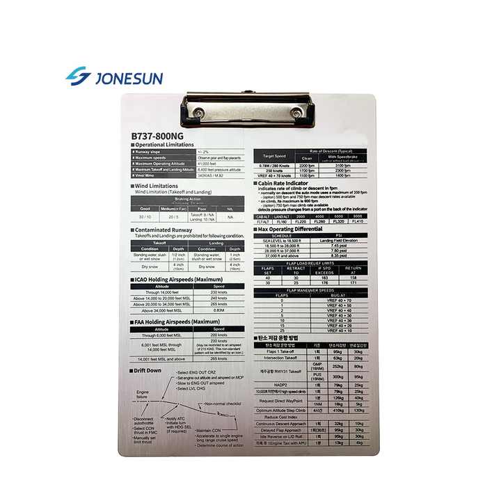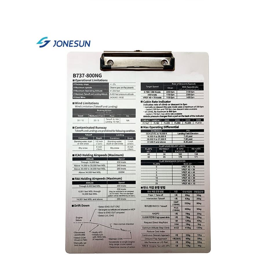 De acero inoxidable A5 A6 de aluminio plegable de portapapeles para piloto
