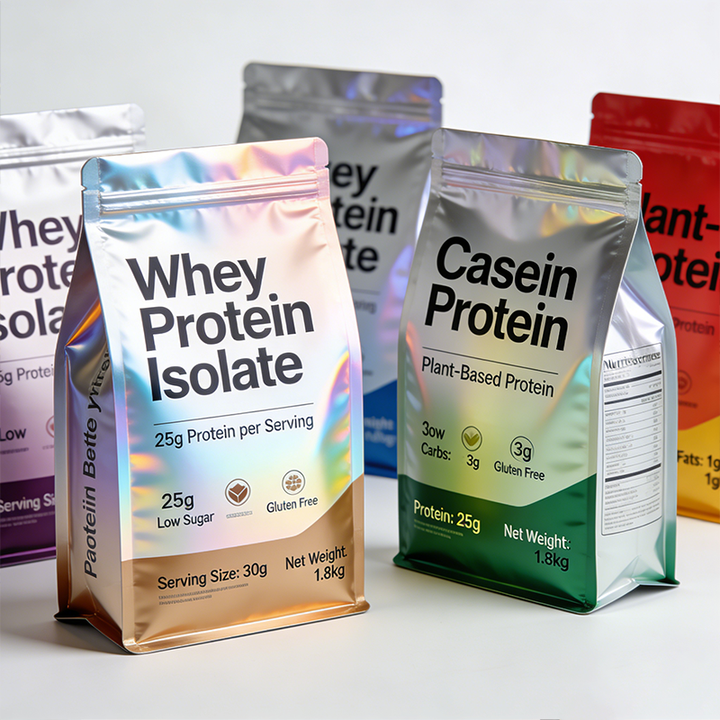 Bolsa de Embalaje para Proteína de Suero con Logotipo Personalizado, 250g 500g, Bolsa Desechable con Sellado Térmico para Proteína en Polvo, Empaque Individual, Bolsa de Fondo Plano