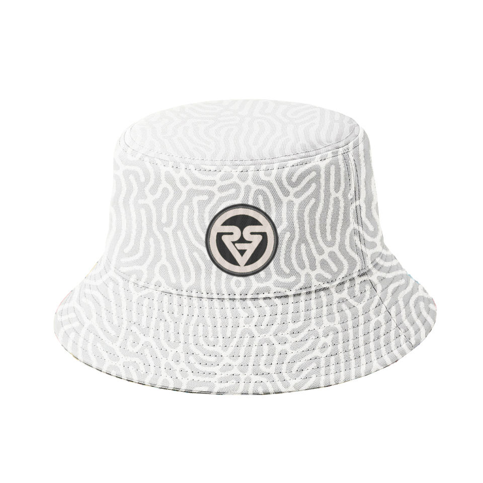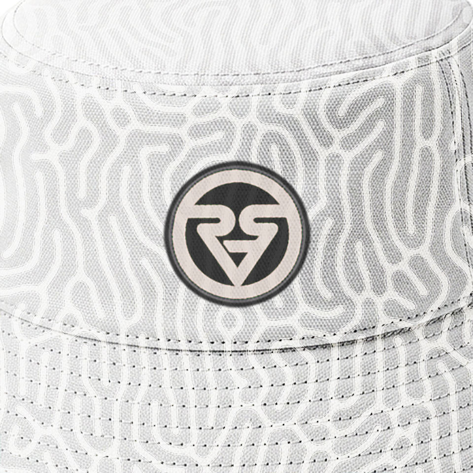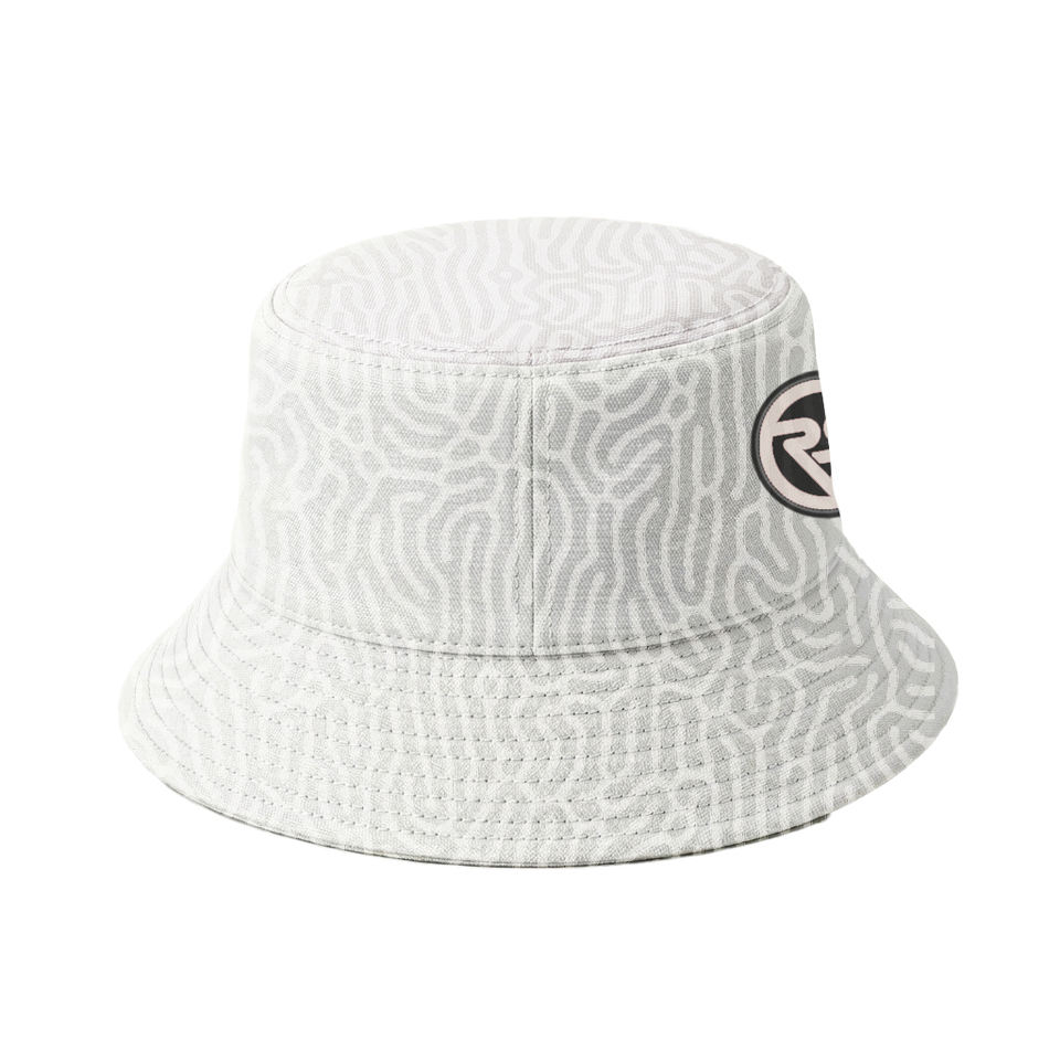 Sombrero de Pescador con Logotipo Personalizado, Diseño Abstracto de Coral Blanco, Sublimado, de Poliéster Premium Reversible, Estilo Urbano Minimalista
