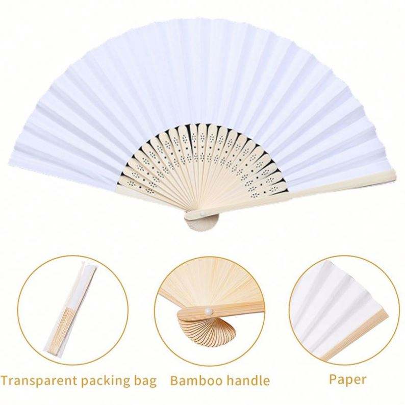Abanico de Papel Blanco con Logotipo Personalizado, Abanico Plegable de Bambú, Abanico de Mano con Impresión, Abanico de Tela de Bambú para Bodas y Fiestas