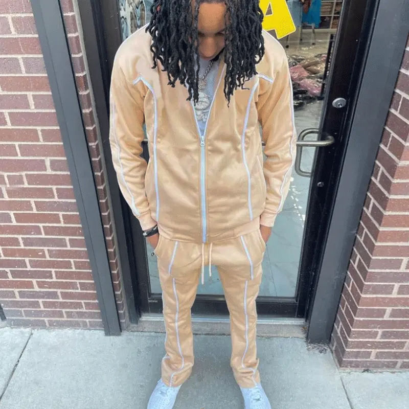 Conjunto de dos piezas con bordado de alta calidad y logotipo personalizado al por mayor, chándal de chándal reflectante para correr y ropa deportiva para hombre