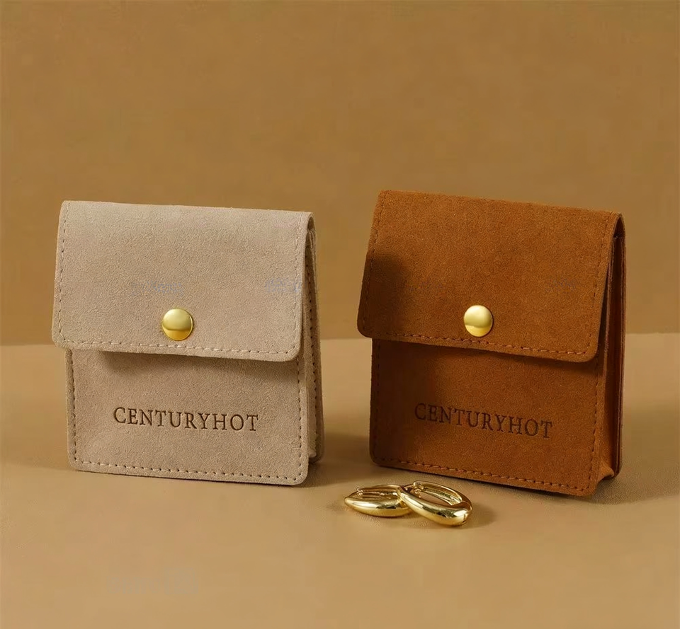 Bolsa de microfibra para joyería con logotipo personalizado al por mayor, bolsa de joyería hecha a mano con botón a presión, bolsa para pendientes, collar, anillo, bolsa de regalo de boda