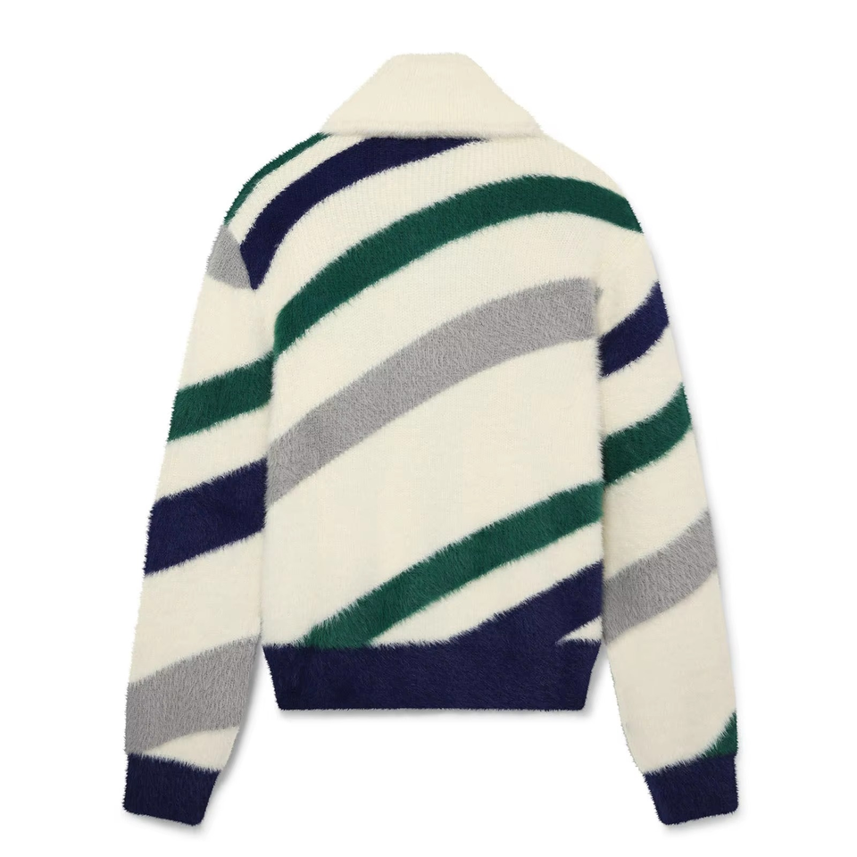 Suéter Cárdigan de Mohair con Cierre, Manga Larga, Tejido de Invierno Transpirable, con Rayas Peludas, Cuello Camisero, Logotipo Personalizado, Alta Calidad
