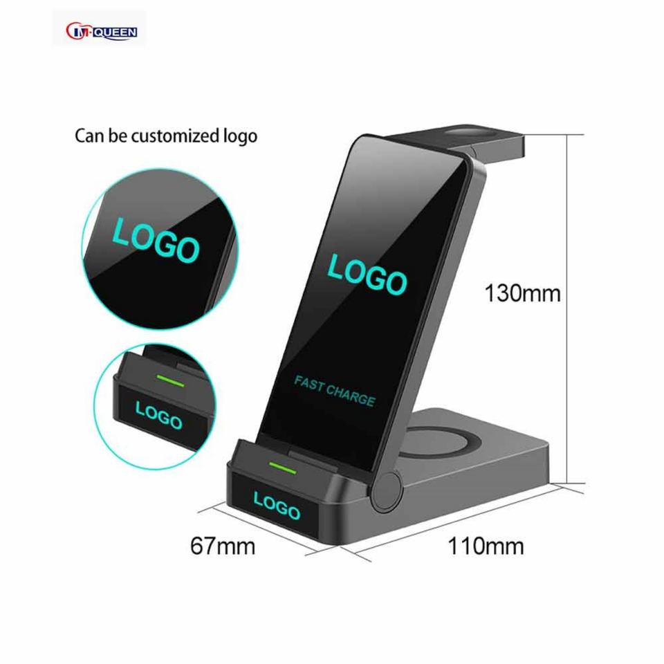 Base de Carga Inalámbrica con Logotipo Personalizado, Soporte Plegable de Escritorio, Cargador Rápido para Teléfono, para la Serie iPhone, Cargador Inalámbrico de 5W 10W 15W, 3 en 1
