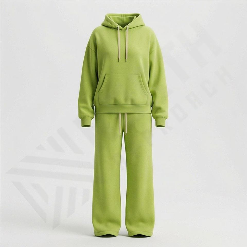 Conjunto de Dos Piezas de Sudadera con Capucha y Pantalones Deportivos para Mujer con Logotipo Personalizado, Estilo Holgado con Hombros Caídos, Felpa Gruesa de Algodón