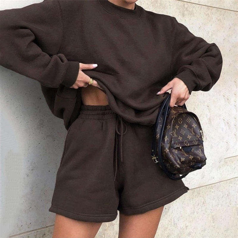 Ropa de mujer con logotipo personalizado de dos piezas de manga larga de gran tamaño con capucha pantalones cortos de Entrenamiento Conjunto de Jogger