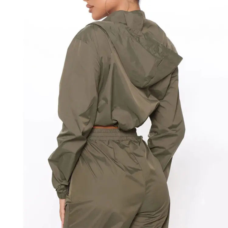 Conjunto Deportivo de 2 Piezas para Mujer con Logotipo Personalizado, Chaqueta Cortavientos Ligera con Cremallera Completa y Pantalones Jogger, en 2026