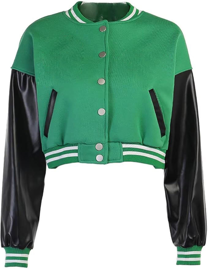 Chaqueta universitaria con logotipo personalizado para mujer, bombarderos de béisbol elegantes clásicos recortados con parche de chenilla bordado, estilo Vintage