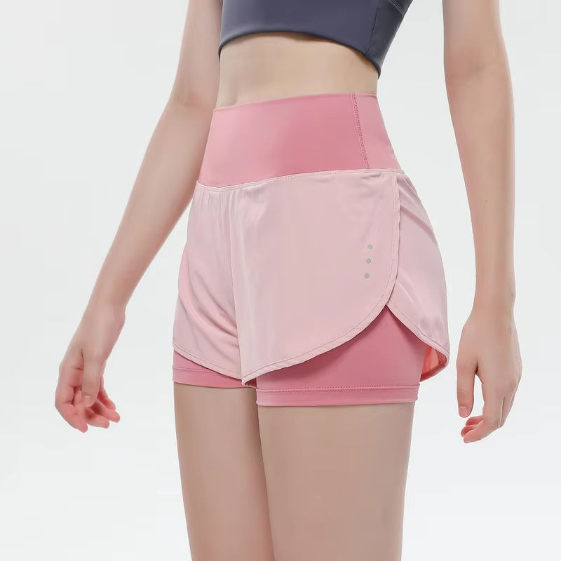 Pantalones cortos deportivos de doble capa 2 en 1 con cintura elástica y cintura alta para mujer con logotipo personalizado