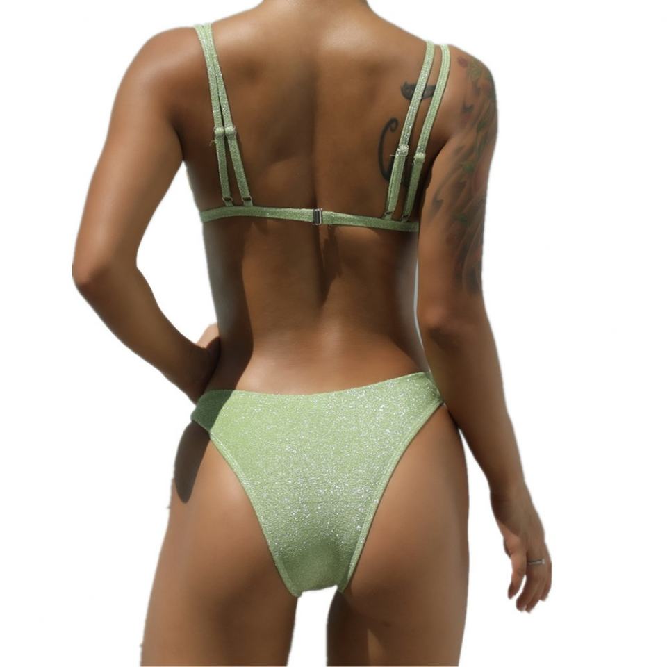 Traje de Baño de Dos Piezas para Mujer con Logotipo Personalizado, Bikini de Triángulo de Color Sólido con Tiras