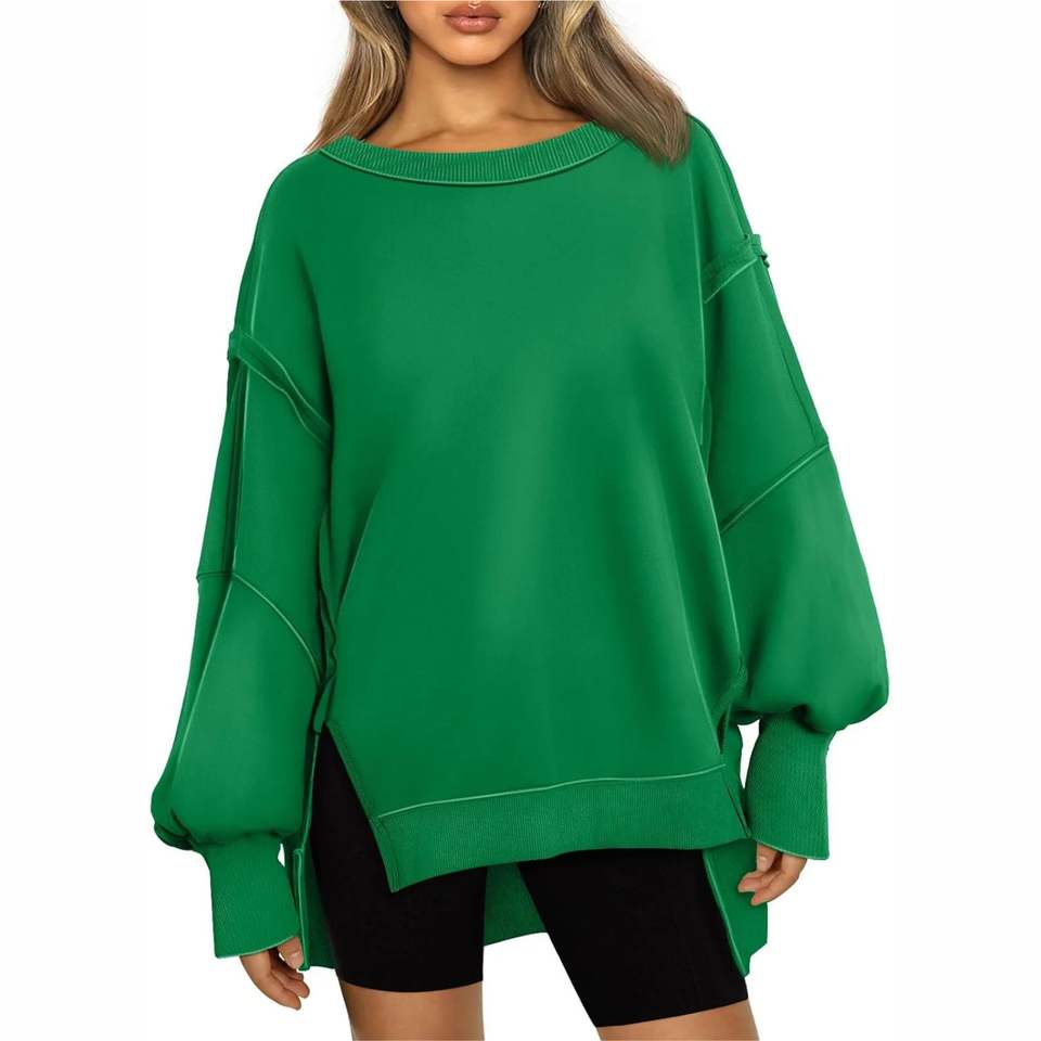 Sudadera de lona oversize para mujer con apliques formales, cuello redondo, manga larga, logotipo personalizado, top único, ligera para invierno