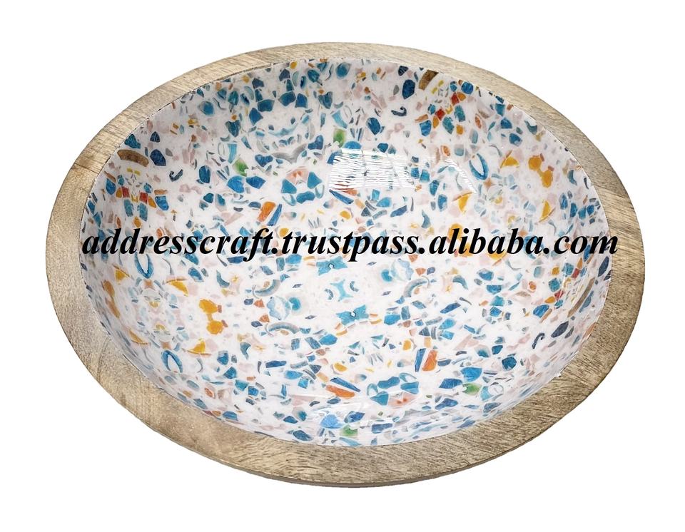 Logotipo personalizado de madera esmaltada impresa en el interior para ensaladas y cuencos para servir para uso en el hogar, hotel y restaurante, bodas, fiestas, fruteros