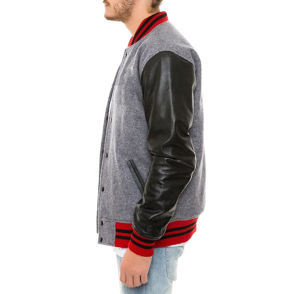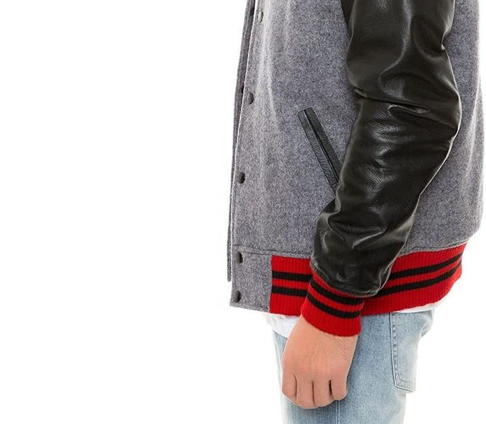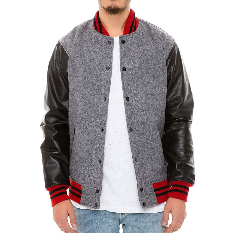 Chaqueta universitaria de béisbol con bordado de chenilla de lana y logotipo personalizado para hombre y mujer, chaqueta de invierno vintage con mangas de cuero de color personalizado.