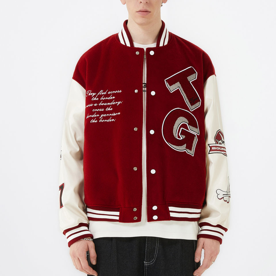 Chaquetas Varsity Personalizadas con Logotipo Bordado en Chenilla de Lana, Chaqueta Varsity Vintage para Hombre con Mangas de Cuero