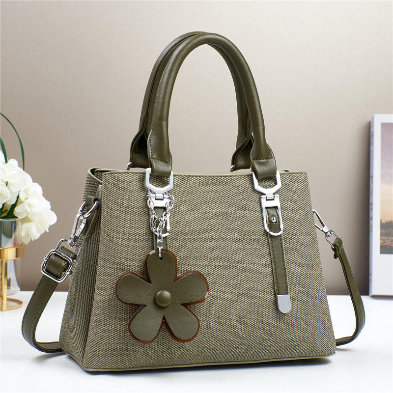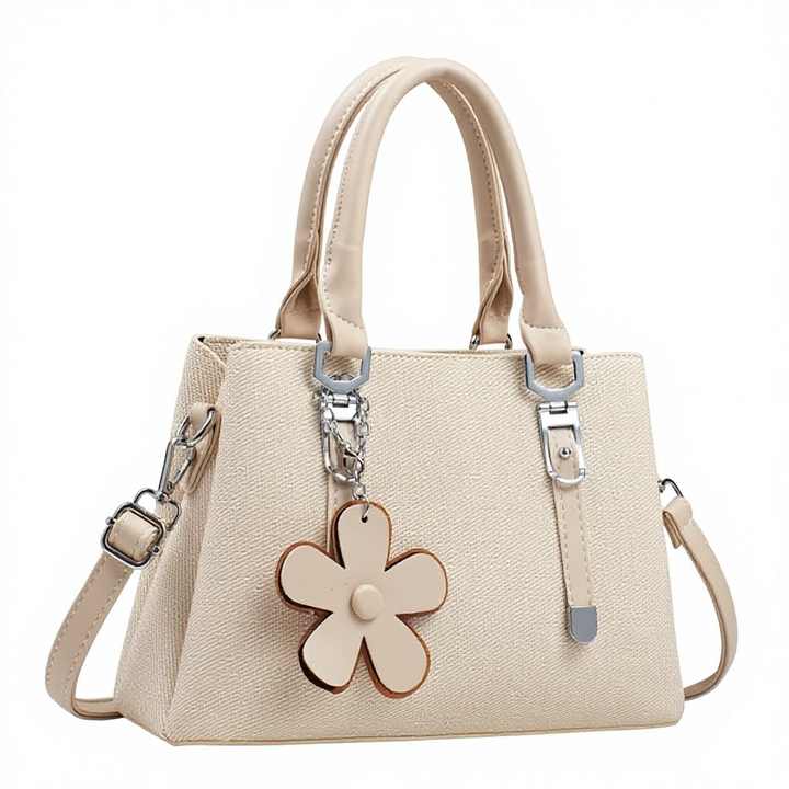 Bolso de Mano con Textura Tejida y Logotipo Personalizado para Mujer, Elegante Bolso Tipo Satchel con Asa y Adorno de Flor Desmontable, Bolso Bandolera Ajustable