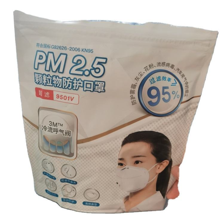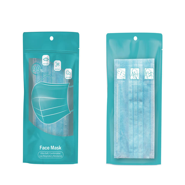 Bolsa de embalaje al por menor de plástico con cremallera y logotipo personalizado para embalaje de protección facial