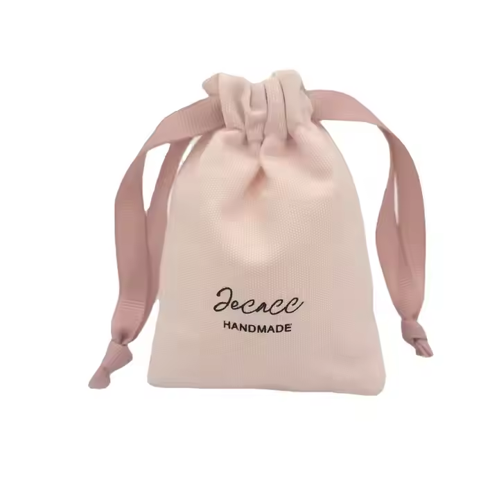 Bolsa de almacenamiento de velas de algodón de tela de regalo para invitados de boda pequeña rosa con logotipo personalizado bolsa con cordón de muselina de lino suave