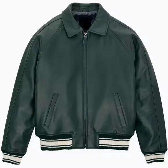 Chaqueta Bomber con Logotipos Personalizados, Chaqueta de Invierno de Alta Calidad con Mangas de Cuero, Chaqueta Ajustada de Forro Polar con Piel de Oveja para Hombre