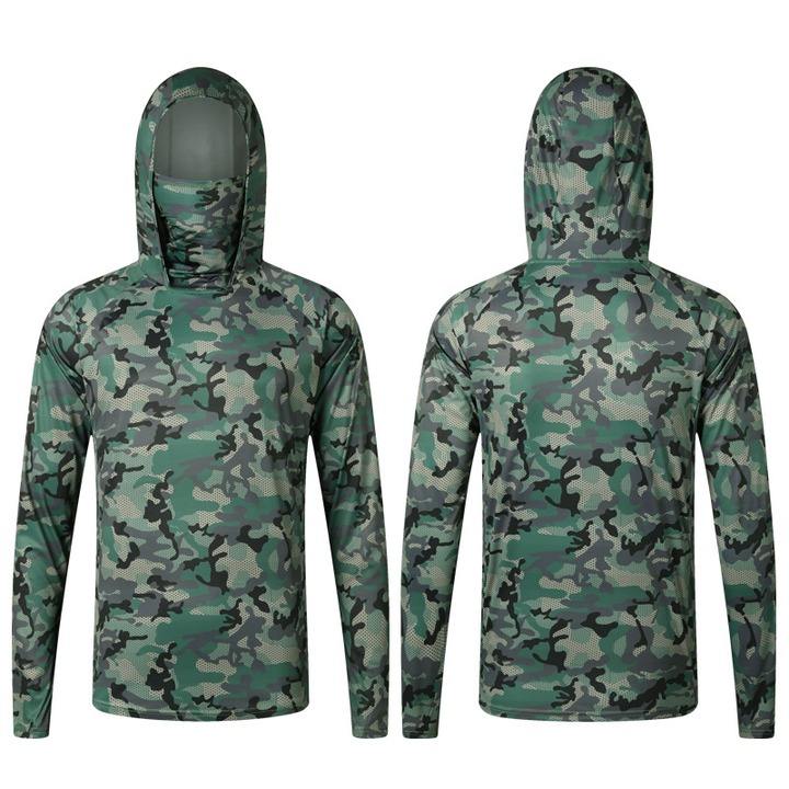 Impresión de pescado de manga larga personalizada de secado rápido UPF50 + protección solar camisas con capucha de pesca ropa de pesca UV con cubierta facial