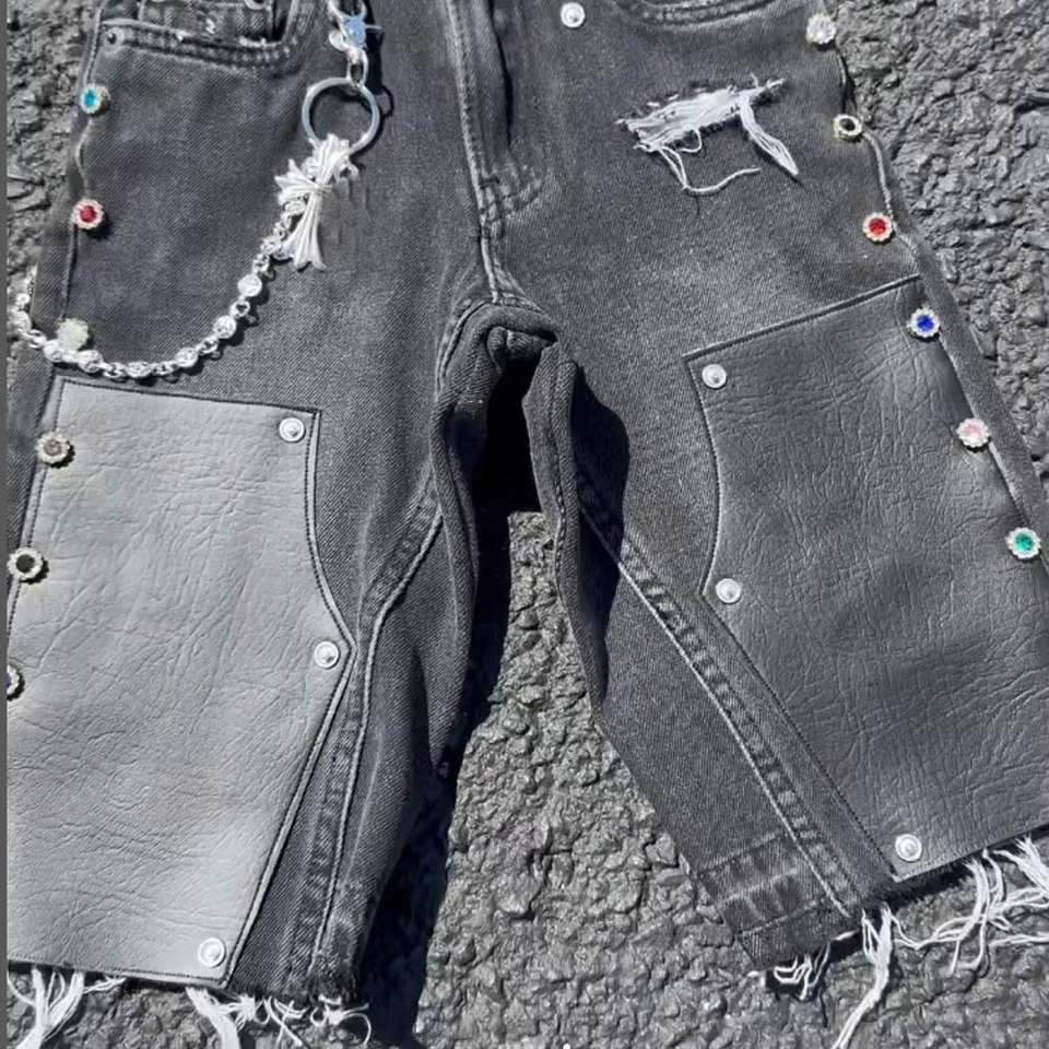 Pantalones cortos de mezclilla sueltos personalizados Stone Wash Ripped Plus Size Printc algodón doble cintura Jorts Denim para hombres Studs Rivet Jorts Streetwear