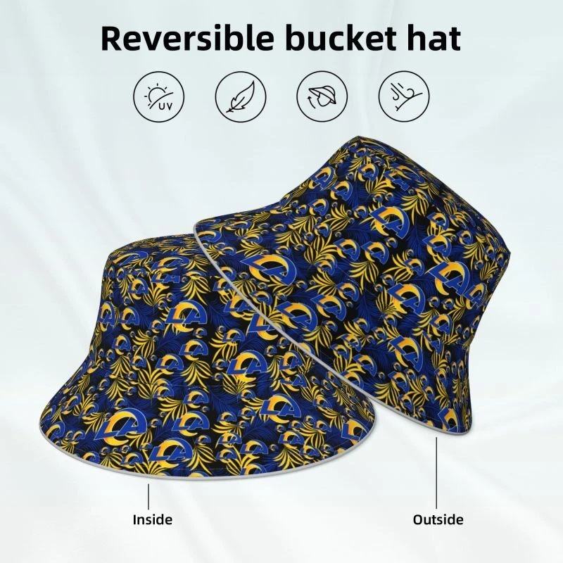 Sombrero de Pescador Personalizado de los Angeles Rams con Estampado Hawaiano, Gorra de Sol Casual de Fútbol Americano, Gorra de Playa de Moda para 32 Equipos