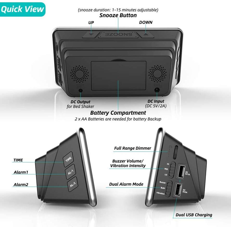 Reloj despertador fuerte personalizado con coctelera para cama, para dormir pesado, sordos y duros de audición, despertador Dual