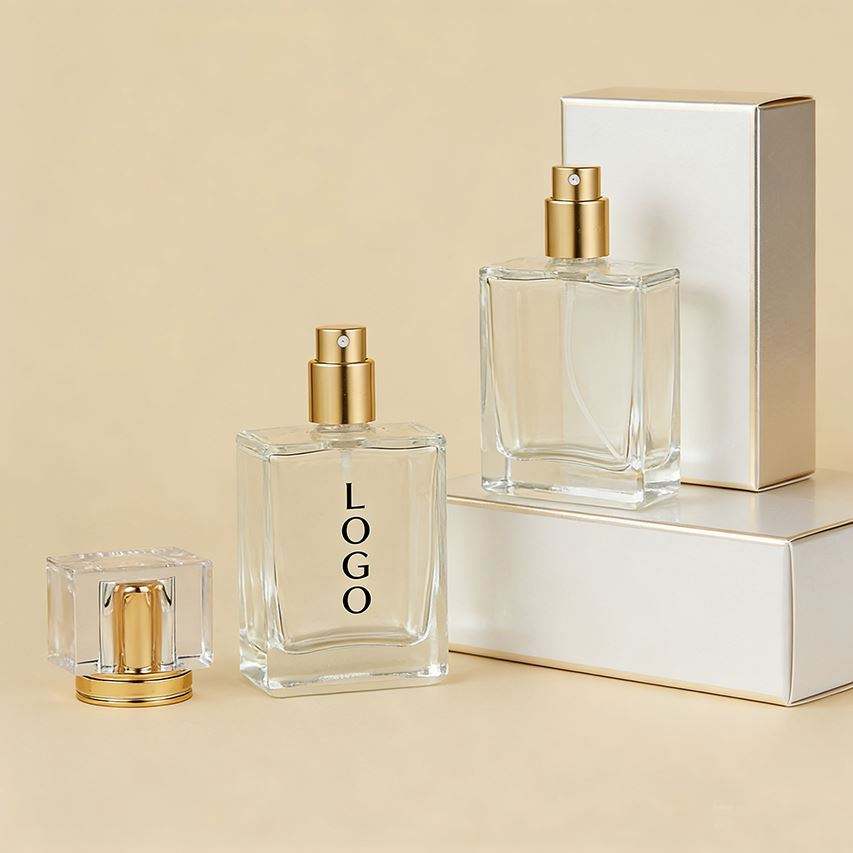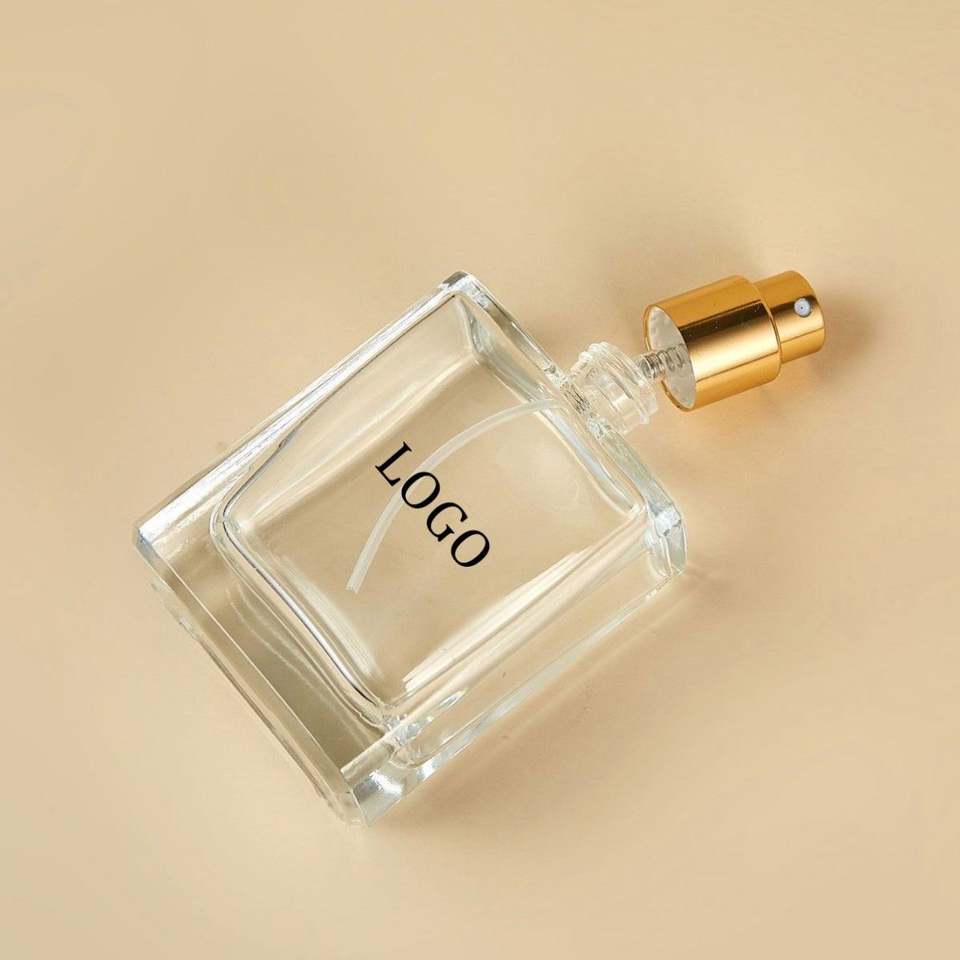 Botella de Spray de Vidrio Cuadrada de 50 ml con Base Gruesa y Tapa de Rosca, Atomizador de Niebla Fina para Productos de Belleza, MOQ Bajo Personalizado