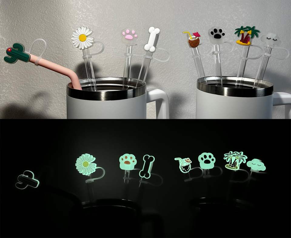 Cubierta Luminosa Personalizada para Pajitas de Vasos Stanley de 30 y 40 oz, Brilla en la Oscuridad, Lindos Protectores de Silicona para Pajitas