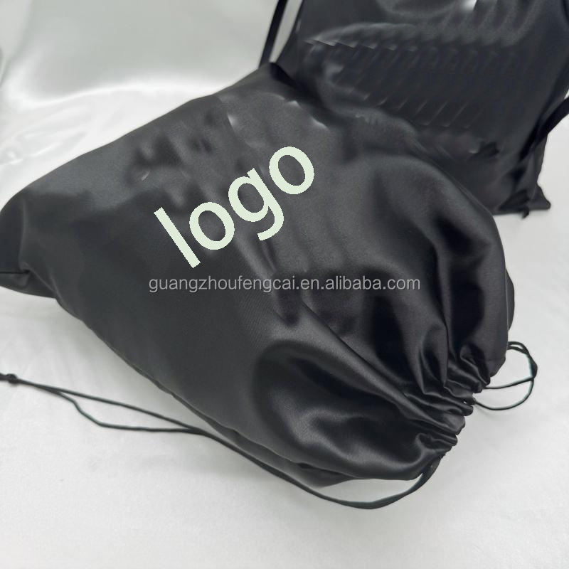 Bolsa antipolvo personalizada de lujo en raso negro con cordón para gorras, sombreros, sujetadores y ropa interior - embalaje para viaje